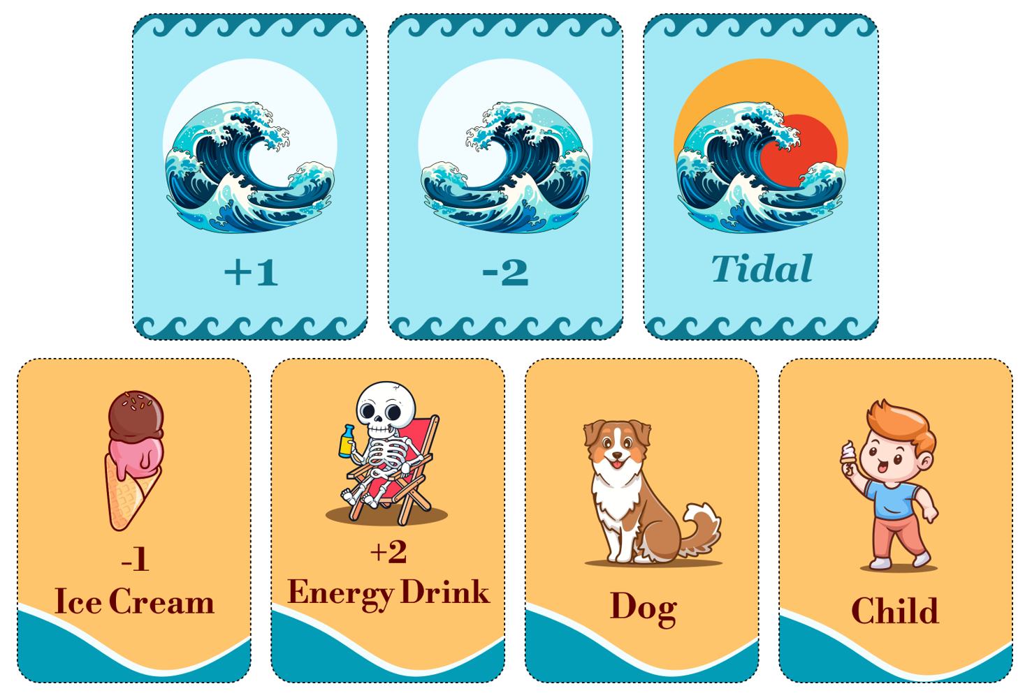 Solution:Kept players engaged throughout the game by integrating beach themed event cards for greater variety and creating tension with the wave mechanic.