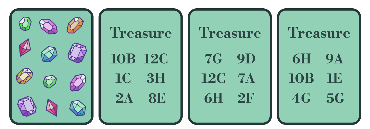- Coordinate system needed to be printed on the board for treasure placement